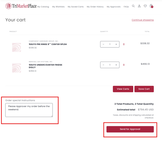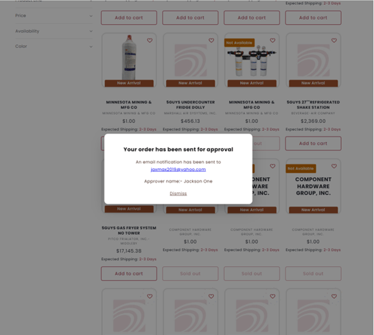 When you submit an order for approval, a popup notification will appear confirming that your order has been sent for approval. Both End User and Approver will receive email notification with order details.