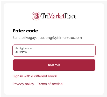 Click Continue to receive a one-time passcode at your email address (this may take up to 2 minutes). Enter the 6-digit code you receive, then click Submit.