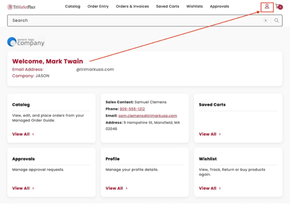 Click the Person icon in the top right corner to view your account details.